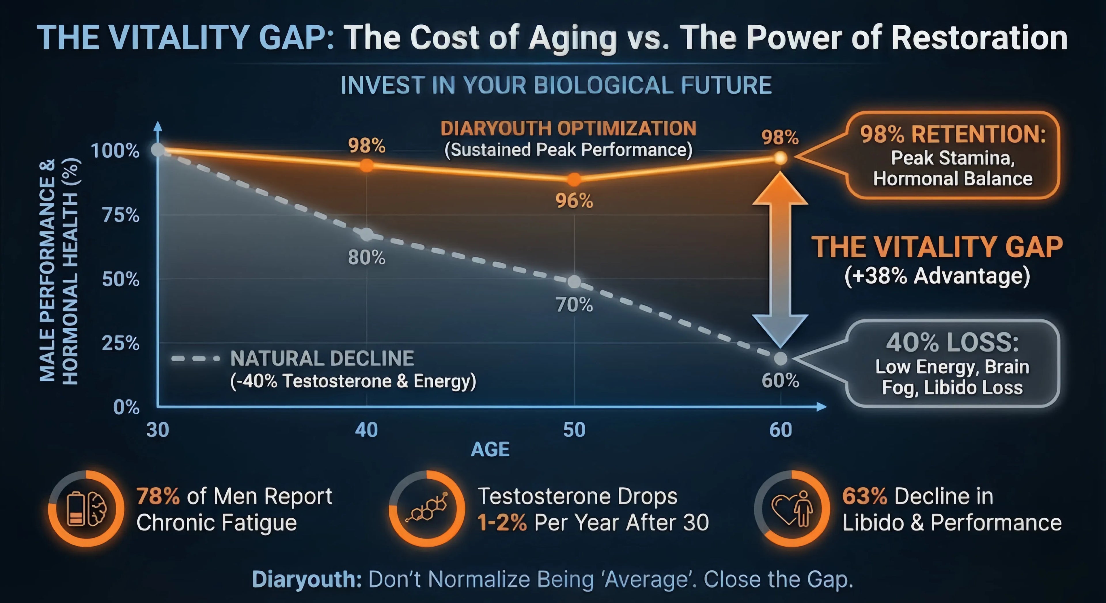 🔥 With Diaryouth: Supports healthy levels, aiming for 95% of peak prime.